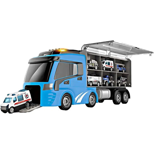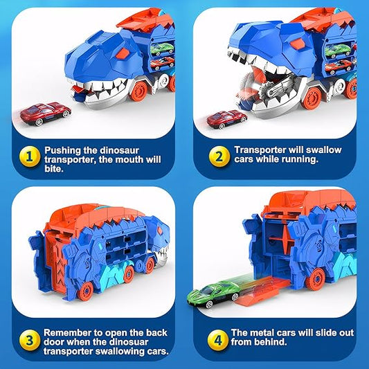 Dinosaur Transporter Truck Foldable Sliding Race Track Toy with 4 Toy Cars for Kids