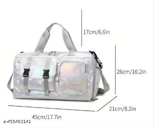 Shiny Silver Sports Imported Reflector Duffle Gym Bag