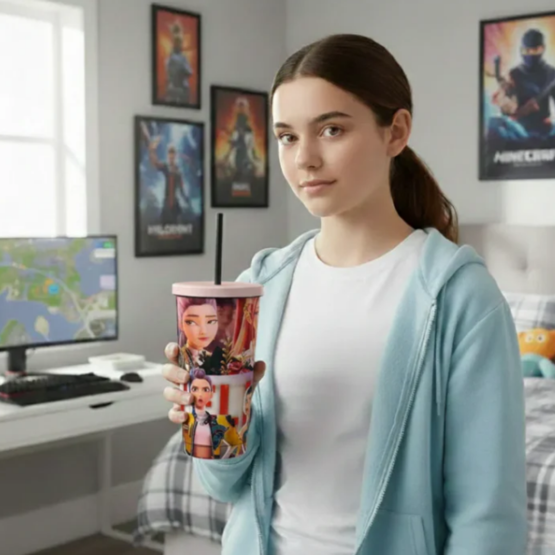 Featuring a K-Pop Demon vibrant printed design and a sleek, modern shape, it’s perfect for kids, teens, and adults alike. Whether you’re heading to school, office, gym, or on a road trip, this travel-friendly tumbler delivers comfort, durability, and standout looks in one smart package