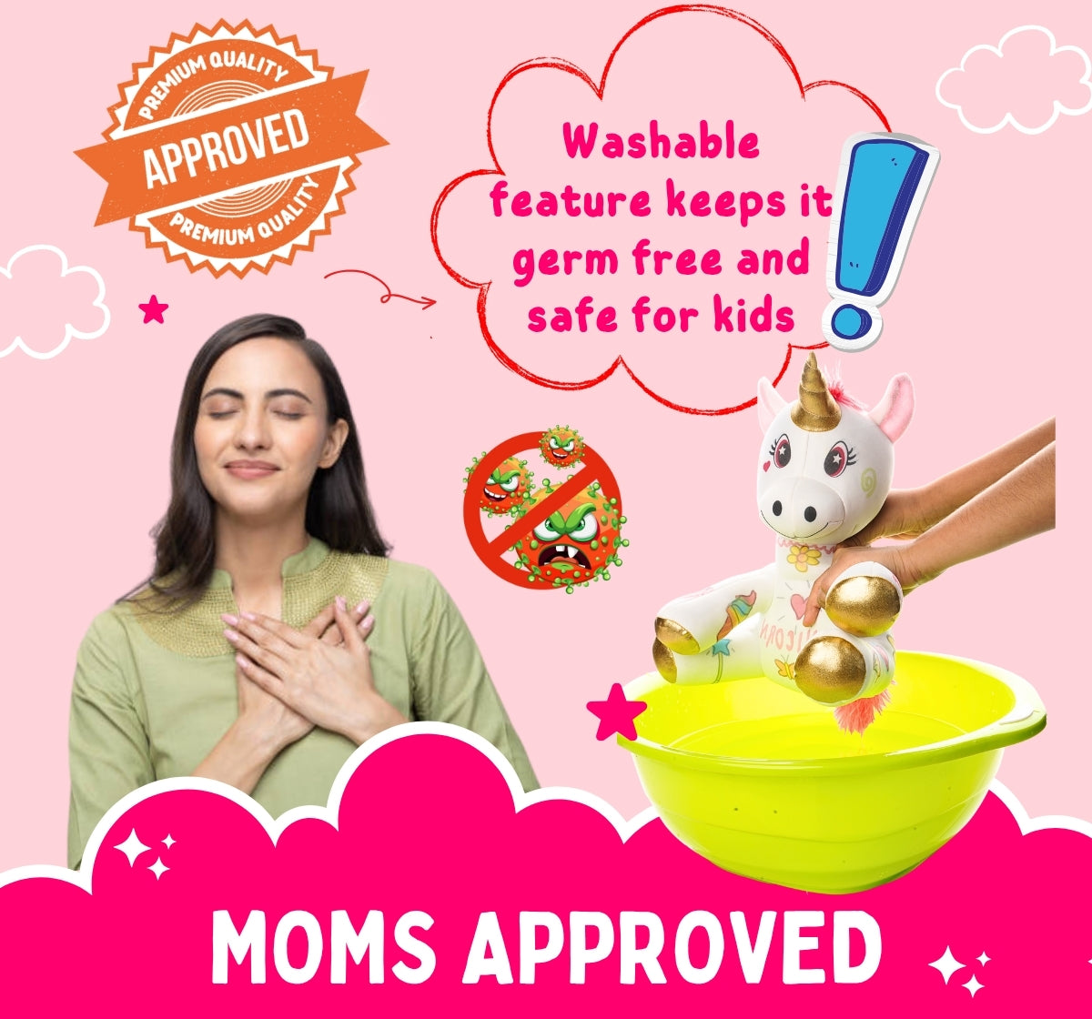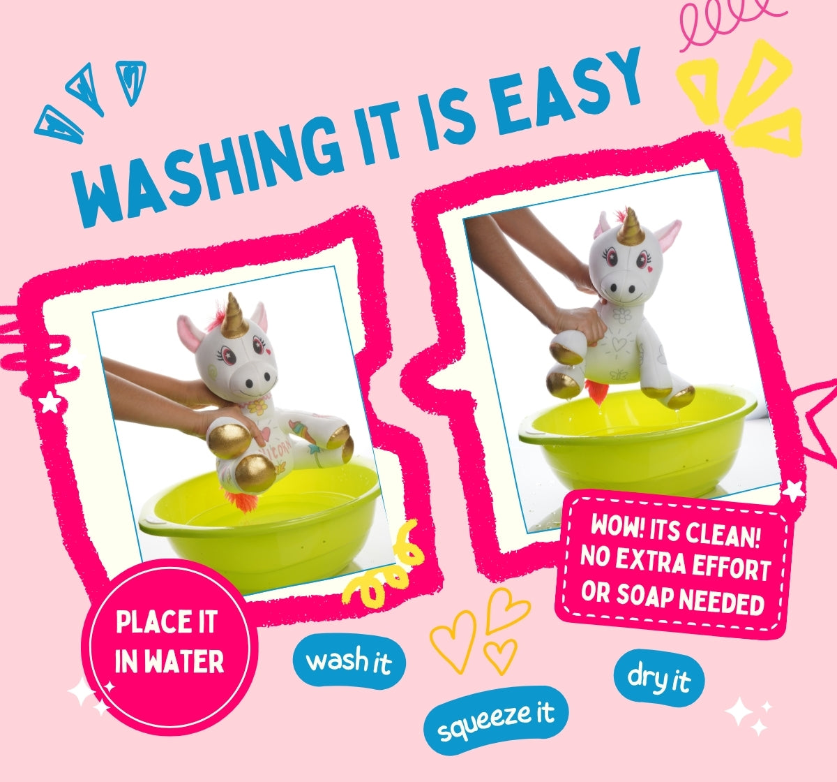 • Washable & Mess-Free: When creativity strikes, there's no need to worry about the mess! Simply wash the Doodle Unicorn under running water or in the tub to easily remove colors. The specially designed, high-quality fabric keeps the toy looking like new after every wash, ready for the next coloring adventure.