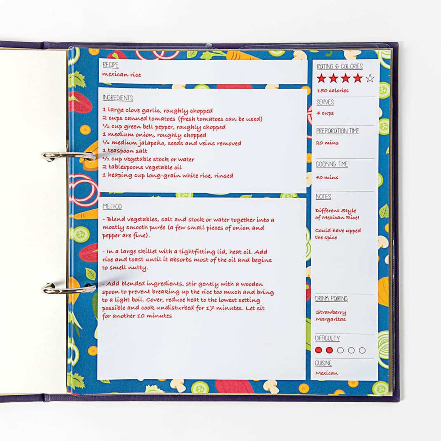 An Easy Yet Effective Way Of Organising All Your Recipes! This File Journal Is The Solution To All Your Problems! Not Only Can You Write Your Recipe Down, But You Can Also Rate It By Taste Or Difficulty, Add Drink Pairings And Make Your Own Notes!