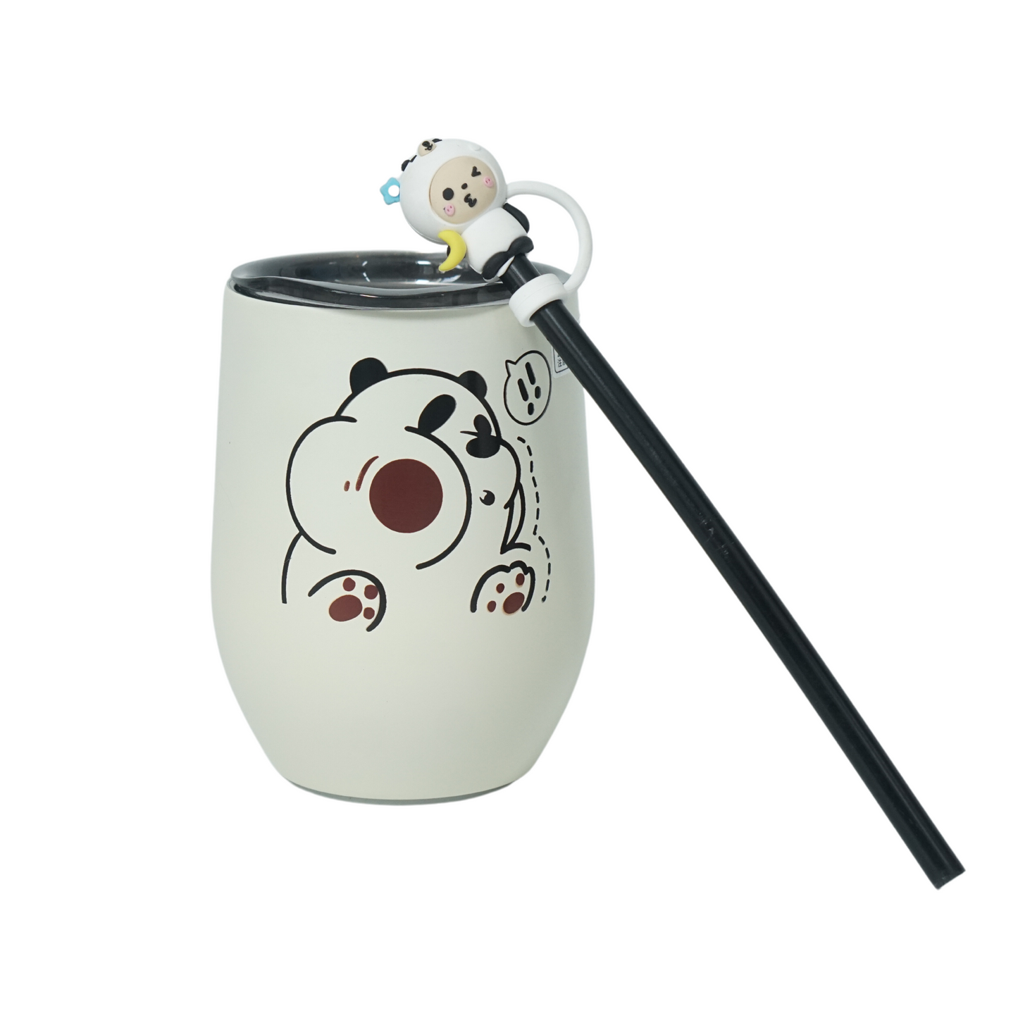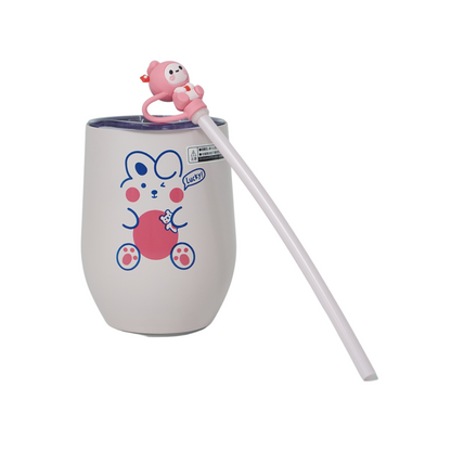 Stylish Insulated Milk Drinking Mug with Straw for Kids - 280 ML